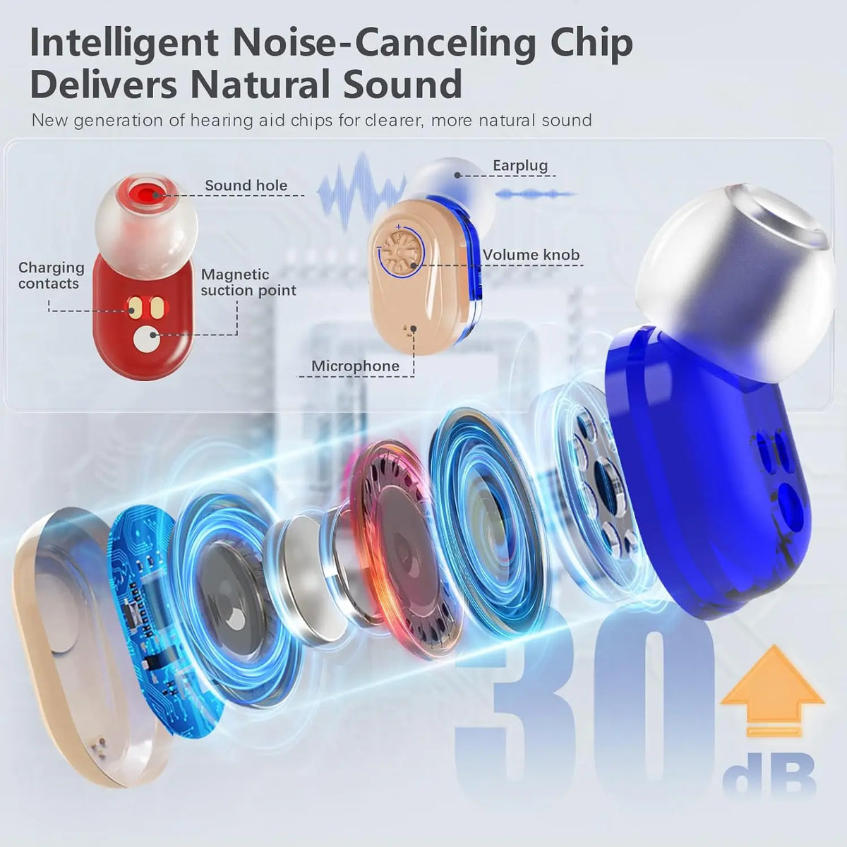 Reduces background noise for clearer hearing